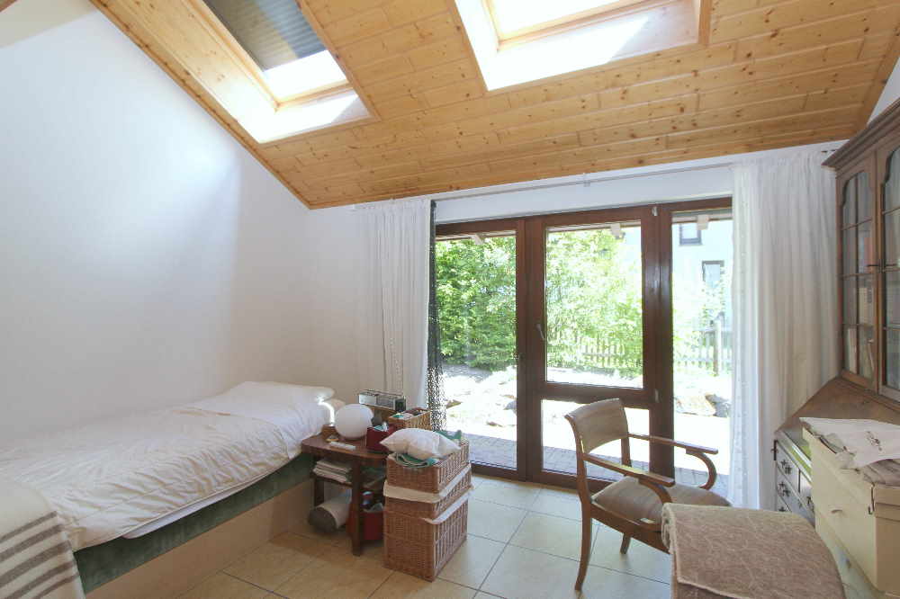 Schlafzimmer 1 im Erdgeschoss mit Ausgang zum Garten