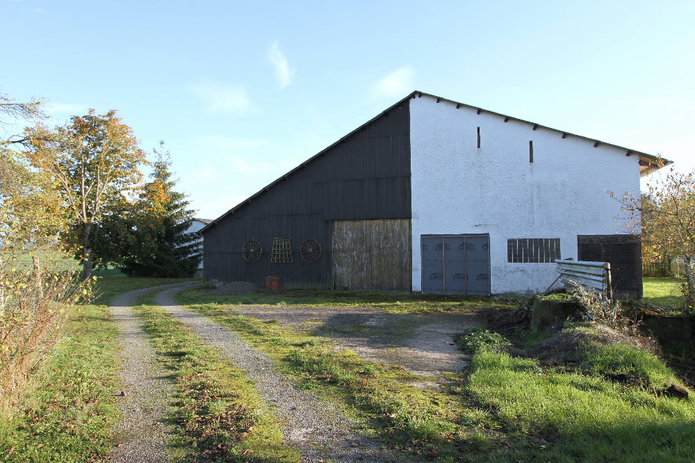 Rückansicht Scheune, rechts im Bild die Tore zum Stall