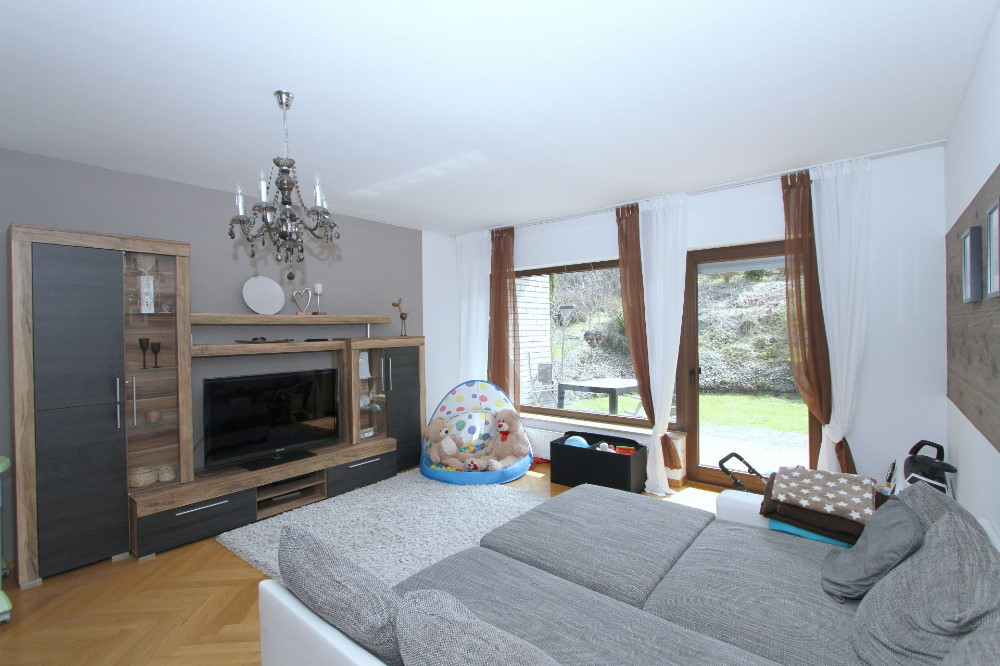Wohnzimmer mit Ausgang zur Terrasse